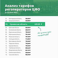 Орловская область входит в тройку регионов ЦФО с самыми низкими тарифами на вывоз ТКО