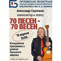 Мероприятие состоится 19 апреля в Орловской областной библиотеке имени Бунина.
