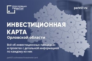 «Эта карта призвана стать ориентиром для инвесторов, показать во всем многообразии потенциал нашего региона. По сути, это довольно долгосрочная и отчетливая стратегия социального и экономического развития районов Орловской области, а, стало быть, региона в целом. Губернатор Орловской области в своем инвестпослании на этот год поручил КРОО и профильному департаменту увеличить в муниципалитетах публичные предложения для инвесторов. Мы уже проделали все вместе довольно большую работу в этом направлении. Наиболее активны сейчас Мценский район, город Мценск, Малоархангельский, Верховский и Кромской районы. Почти вся рубрика «Инвестиционная витрина» на сайте КРОО, так называемый «магазин проектов» ( https://www.park57.ru/investor/investment-card), заполнена их очень интересными проектами разного масштаба для потенциальных инвесторов. То есть статус «приходите и начинайте». Они полностью, так сказать, «упакованы» как проекты», - обращается к потенциальным инвесторам Николай Шин, генеральный директор Корпорации развития Орловской области.