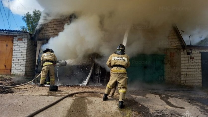 Фото: Пресс-служба ГУ МЧС России по Орловской области Сообщение о возгорании гаража на улице Садовой в поселке Нарышкино поступило вчера в 14.26. К прибытию пожарных полыхало одно из помещений по всей площади, а также смежная крыша. Вместе со специалистами пламя тушили и добровольцы.