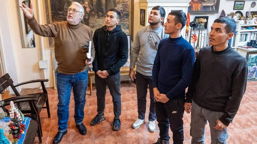 Выставку работ Георгия Дышленко посетили студенты из Туркменистана.