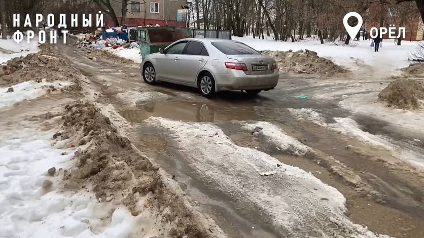 Обеспокоенные орловцы рассказали активистам Народного фронта о разбитой дороге по улице Комсомольской. Участок ведет к школе № 6 и является единственным, по которому может проехать транспорт.