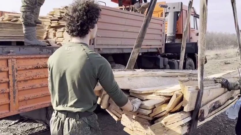 Фото: скриншот из видео Сергея Лежнева Орловские танкисты получили большой гуманитарный груз с строительными материалами. Бойцам доставили три куба досок, 30 листов OSB-плит, пленку, печи-буржуйки, утеплитель, лопатки, топоры, перчатки.