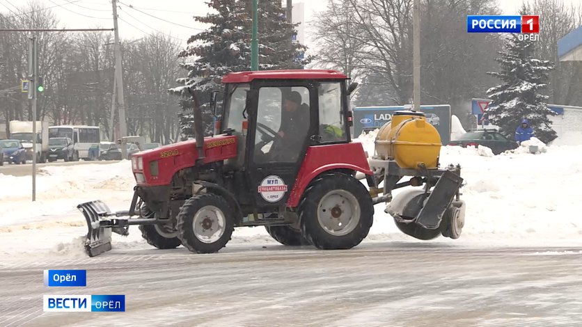 Днем, 28 февраля, на уборку городских улиц вышли 92 уборщика и 49 единиц спецтехники: 19 комбинированных дорожных машин, 14 самосвалов, 11 тракторов, 5 погрузчиков. Снег вывезли с улицы Кромской и Бульвара Молодежи. Активно идет обработка тротуаров от наледи.