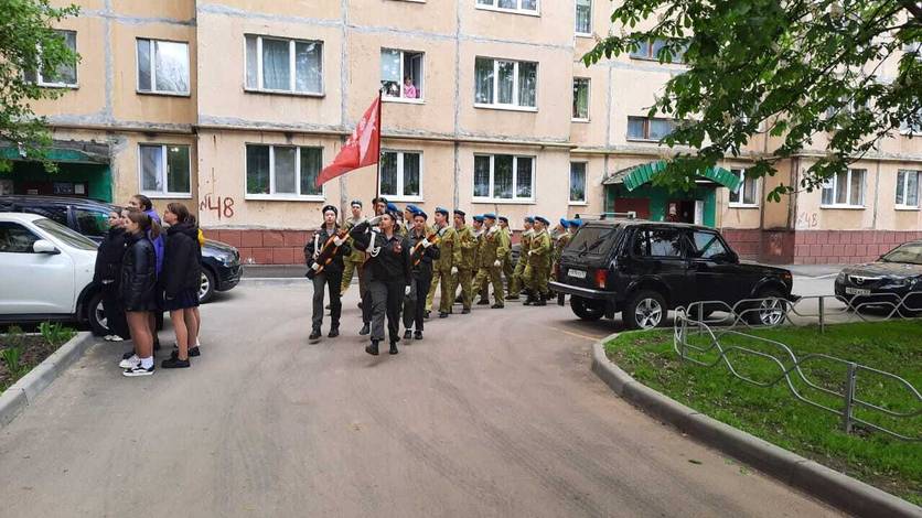 У дома Григория Яковлевича Зинченко промаршировали юнармейцы.
