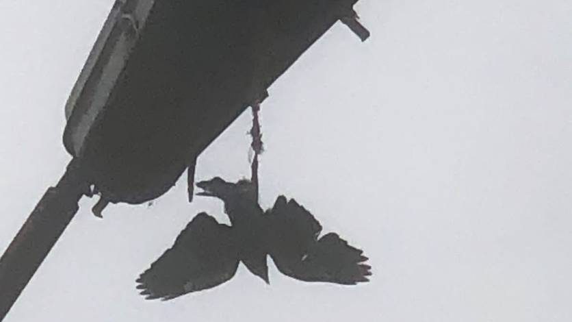 2 июня орловские спасатели пришли на помощь галке, которая запуталась в проводах на фонарном столбе.