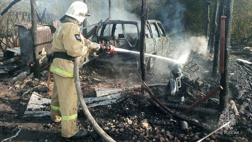 На момент прибытия спасателей автомобиль и деревянный гараж были охвачены пламенем. Существовала угроза, что огонь перекинется на рядом соседний жилой дом.