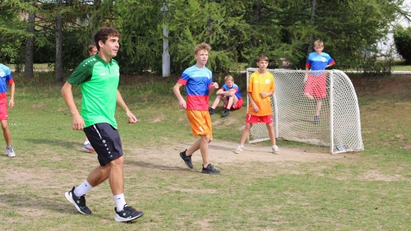 Как сообщаетрегиональный инфопортал, после официальной части мероприятия "Орлы" провели три матча с воспитанниками Лутугинской школы-интерната из ЛНР. А затем спортсмены и участники оздоровительной смены в "Лесной поляне" сделали совместные фотографии на память.