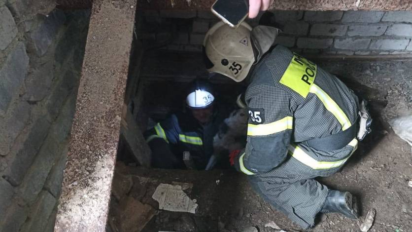 Под Орлом спасли собаку, упавшую в яму На помощь псу пришли спасатели. Фото: ГУ МЧС России по Орловской области