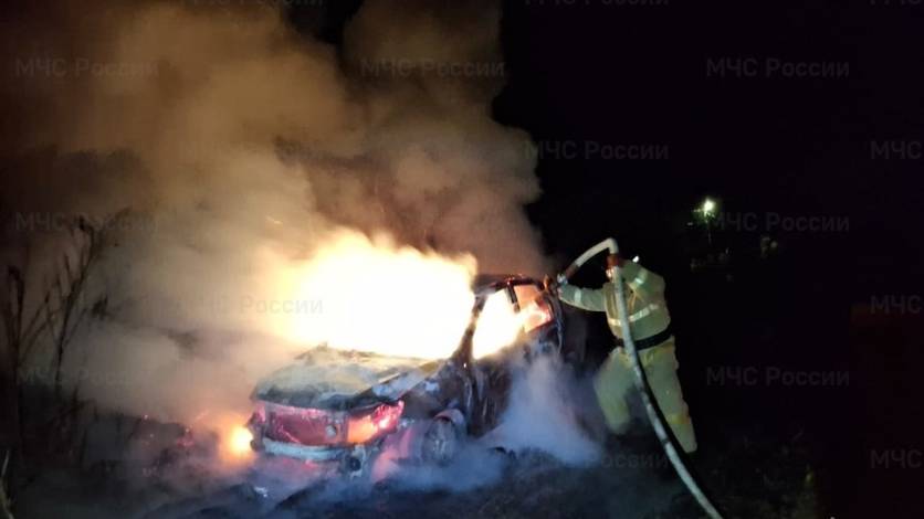 К моменту прибытия пожарных машина уже полыхала открытым пламенем. Спасти ее не удалось. Основной задачей было не допустить распространения огня.