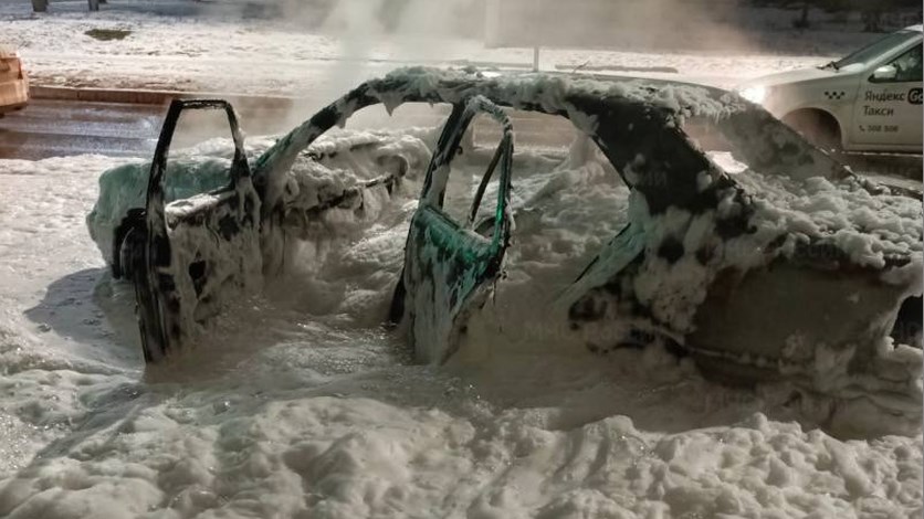 Судя по фотографии, машина сгорела за считанные минуты. Пострадавших нет, причины возгорания устанавливают специалисты.