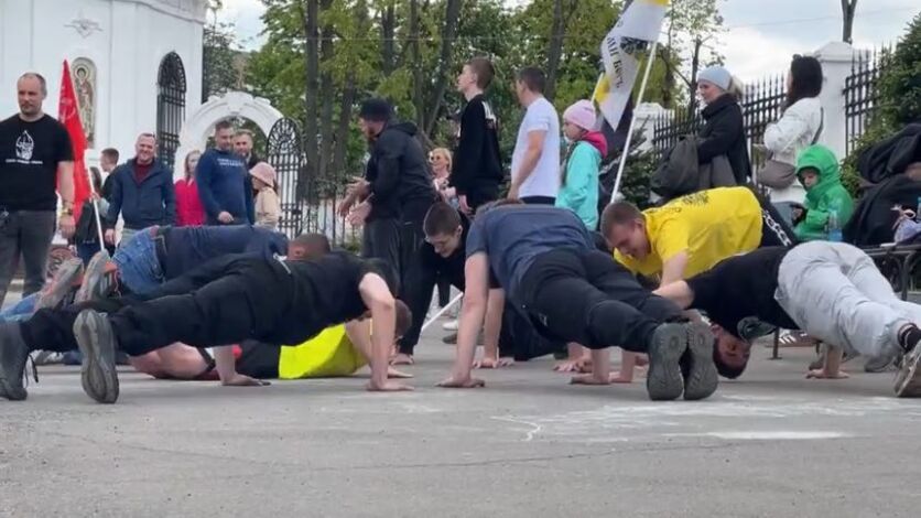 В акции приняли участие мужчины, женщины и дети. Один из юных участников обошел взрослых и отжался 107 раз.