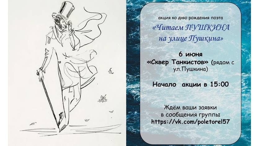 Орловцев приглашают на ежегодную акцию "Читаем Пушкина на улице Пушкина". Она пройдет 6 июня в Сквере Танкистов.