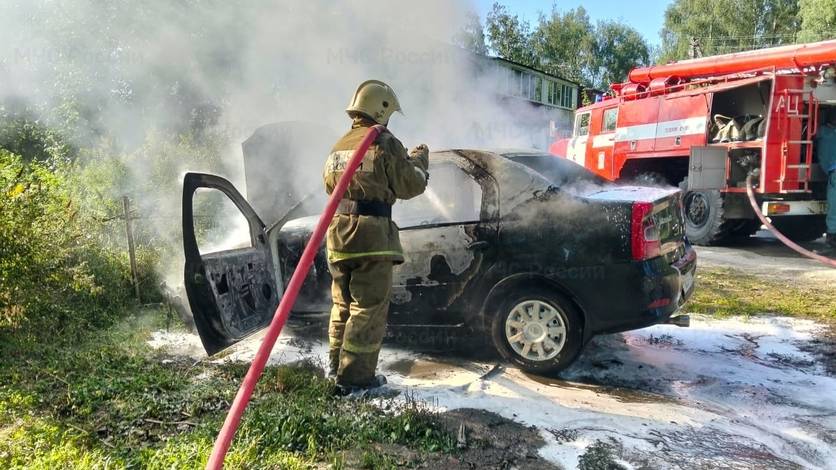 Фото: ГУ МЧС России по Орловской области В поселке Знаменка Орловского округа загорелся автомобиль "Рено Логан". Спасатели получили сообщение о происшествии утром 14 августа.