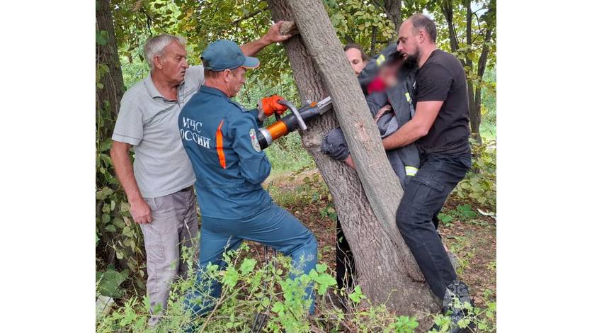 В Ливнах на улице 1-й Черкасской девочка оказалась в ловушке между стволами дерева. Она пыталась забраться на него, но поскользнулась и застряла.