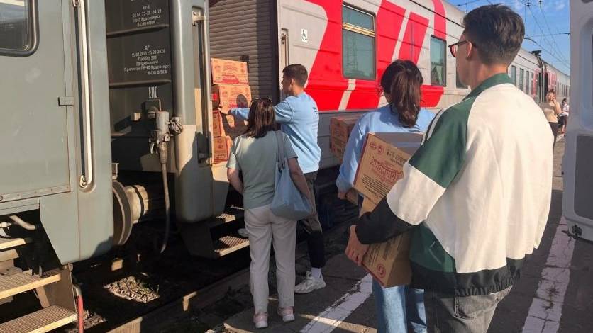 Они раздавали воду и продукты, а также участвовали в встрече вместе с железнодорожниками.