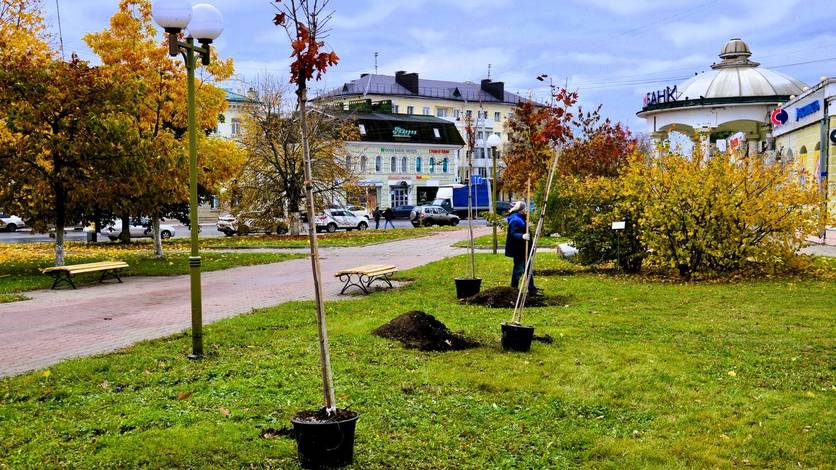 Молодые клены с Ленинского моста в Орле переехали в сквер Ермолова