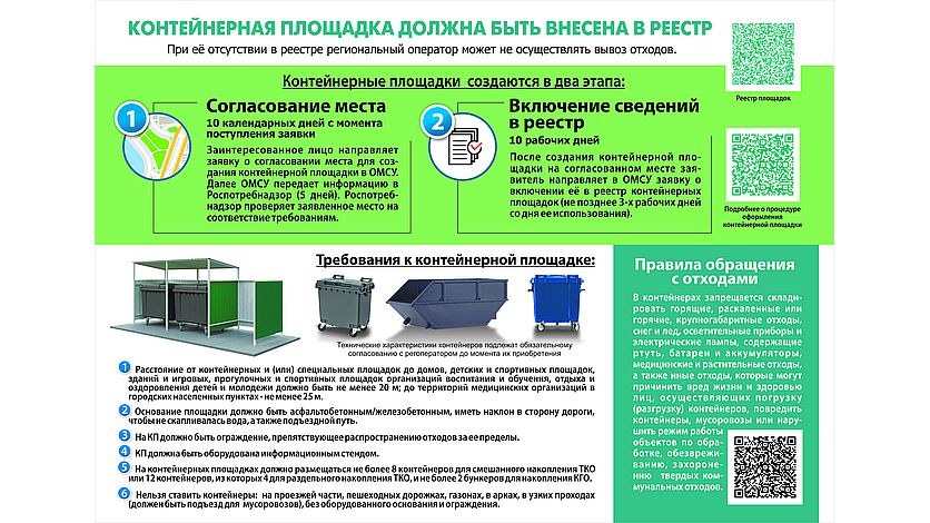 Подробный алгоритм действий для создания новой контейнерной площадки, а также требования к ним можно найти в инфографике, предоставленной региональным оператором.