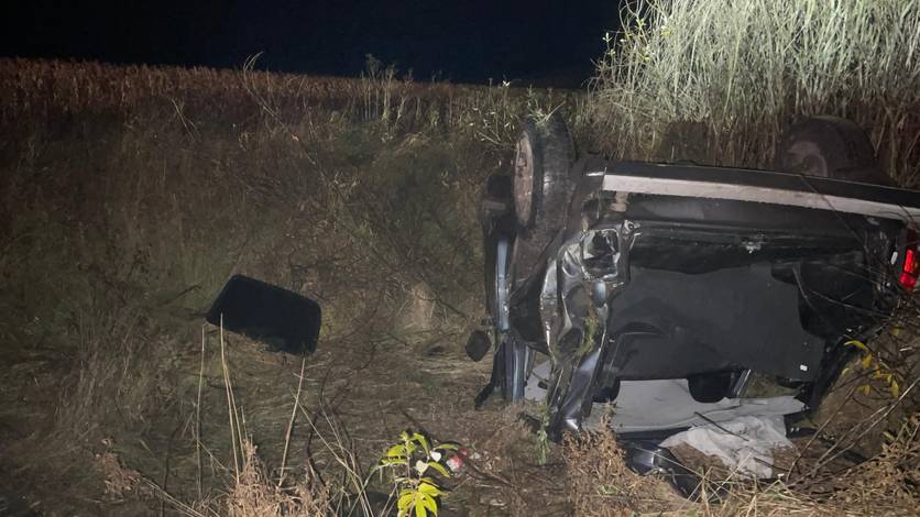 Животное неожиданно выбежало на дорогу, и водитель не успел среагировать. В результате машина вылетела с трассы и перевернулась.