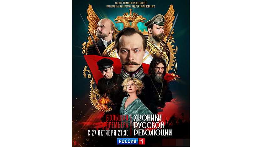 27 октября в 21:30 в эфире телеканала "Россия 1" стартует показ масштабного киноромана Андрея Кончаловского "Хроники русской революции". Сериал охватывает 20 лет истории – от революции 1905-го года до смерти Ленина. Главные роли в картине исполнили Юра Борисов, Юлия Высоцкая, Никита Каратаев, Евгений Ткачук и другие.