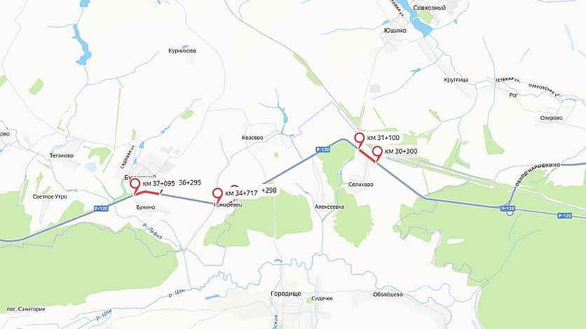Освещение временно пропадет на участках: км 30 – км 31 (д. Селихово), км 36 – км 37 (д. Бунино) и км 34 (п. Комаревец).