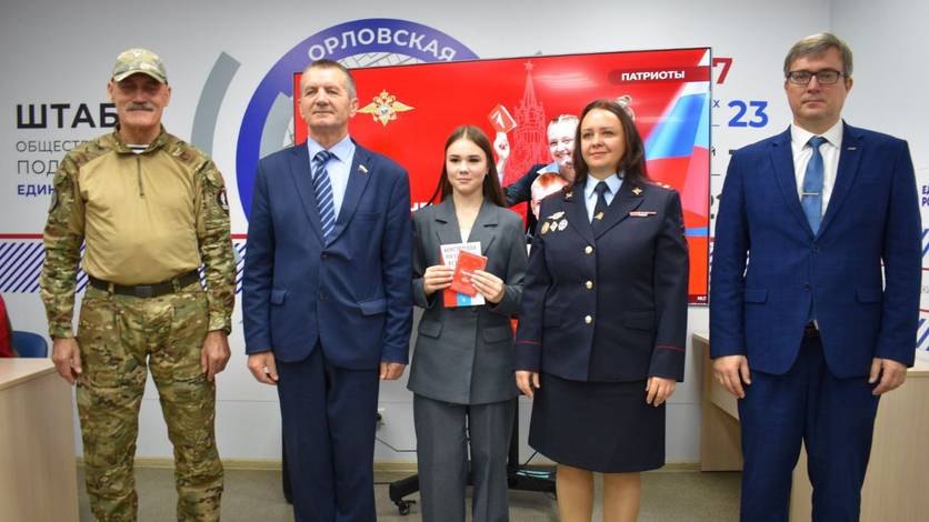 В Штабе общественной поддержки юным орловцам вручили паспорта