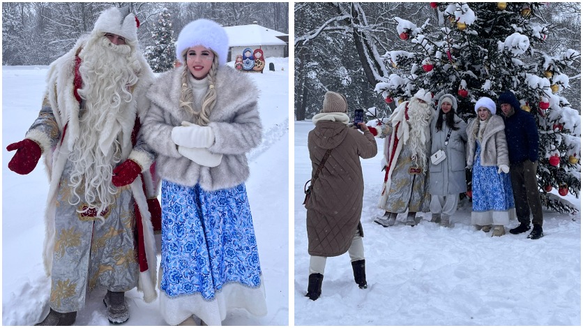 На Большой поляне гостей ежедневно ждут Дед Мороз и Снегурочка.