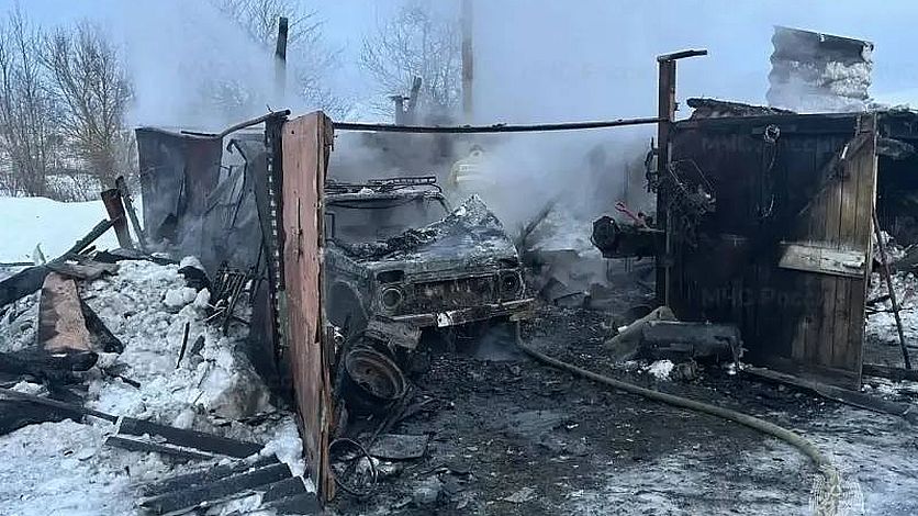 В Орловской области огонь уничтожил гараж вместе с машиной