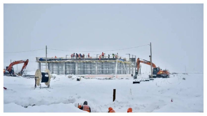 Продолжается возведение служебно-пассажирского здания, гаража службы спецтранспорта и аварийно-спасательной станции. Подрядчик должен успеть полностью сдать аропорт к 2028 году.