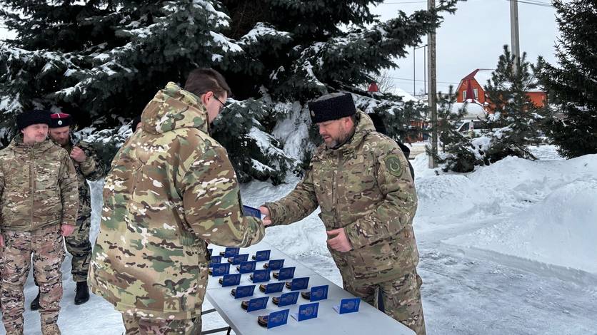 В День защитников Отечества ливенским казакам вручили шевроны и удостоверения