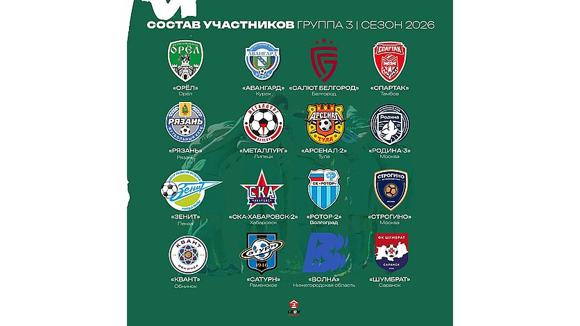 В ней также сыграют курский "Авангард", "Салют Белгород", тамбовский "Спартак", "Рязань", липецкий "Металлург", тульский "Арсенал-2", московские "Родина-3" и "Строгино", пензенский "Зенит", "СКА-Хабаровск-2", волгоградский "Ротор-2", обнинский "Квант", раменский "Сатурн", нижегородская "Волна" и "Шумбрат" из Саранска.
