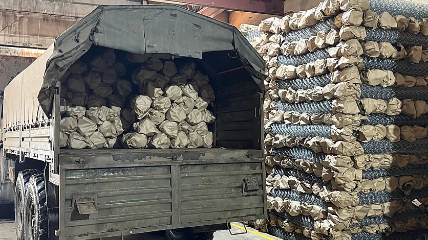 На Запорожское и Курское направления доставили четыре грузовика с рабицей и пленкой.