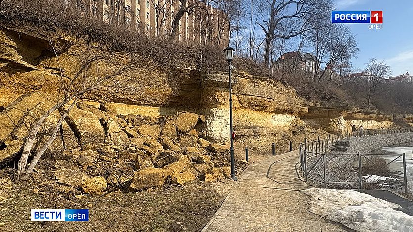 Возле Дворянского гнезда в Орле начал обрушаться склон. Пласты известняка обвалились недалеко от пешеходной дорожки.