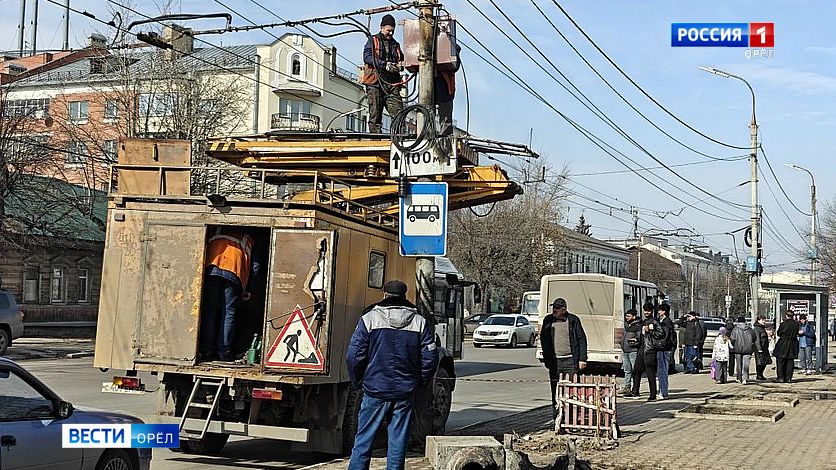 В Орле чинят участок контактной сети на улице Комсомольской возле Польского корпуса Орловского госуниверситета имени Тургенева.