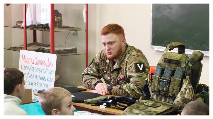 Лисов рассказал детям об основах тактической медицины, показал, как правильно накладывать жгут и турникет. Также ученикам продемонстрировали военную экипировку и показали боевое оружие.