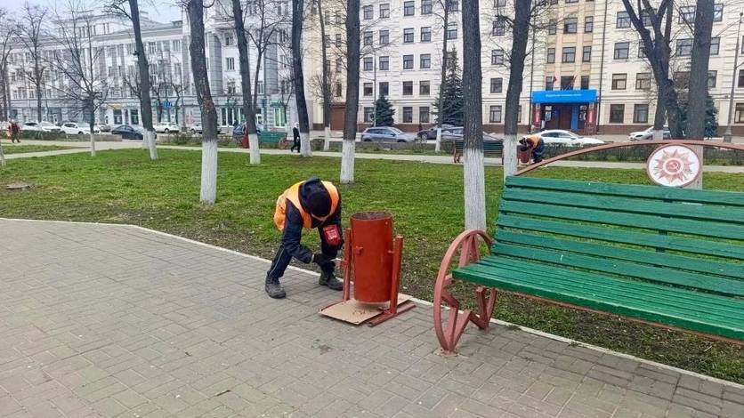 В сквере Танкистов в Орле убрали мусор и покрасили урны