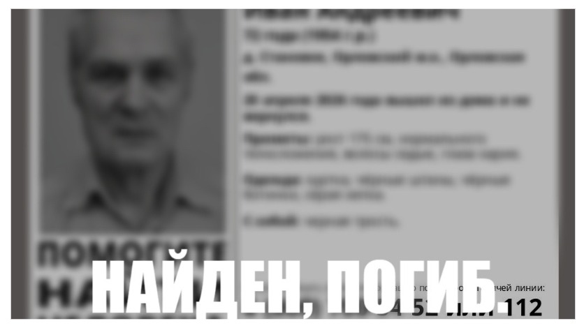 Пропавший на Орловщине Иван Семин найден погибшим. Об этом сообщили в поисковом отряде "ЛизаАлерт".