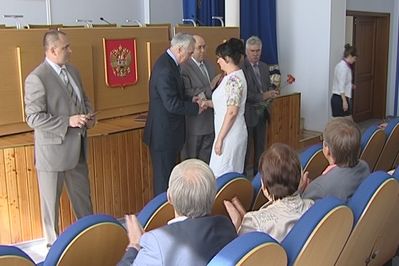 Поздравить коллег в здании Областного суда собрались все судьи и их помощники, не занятые в этот час в заседаниях.