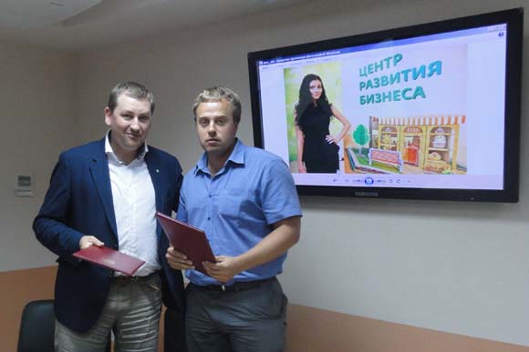Управляющий Липецким отделением Сбербанка Евгений Поливаев и председатель регионального отделения Ассоциации молодых предпринимателей России Антон Сидоров подписали соглашение о сотрудничестве.