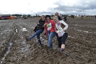 Пожалуй, каждый участник «Нашествия» в этом году вспомнил старый добрый лозунг фестиваля – «мы пережили нашествие». Погодные условия были такими, что всем гостям этого большого праздника пришлось действительно выживать: первые два дня дождь лил практически не прекращаясь. Территория Большого Завидова, где проходило все действо, превратилась в огромную грязевую ванную – и для людей, и для машин. Если первых от непогоды спасали резиновые сапоги и дождевики, то с транспортом вышло сложнее – в трясине увязли более 800 автомобилей. Водителей выручали местные жители на тракторах и сотрудники МЧС России – при помощи спецтехники.